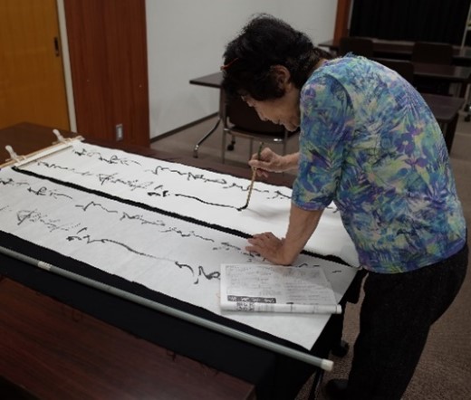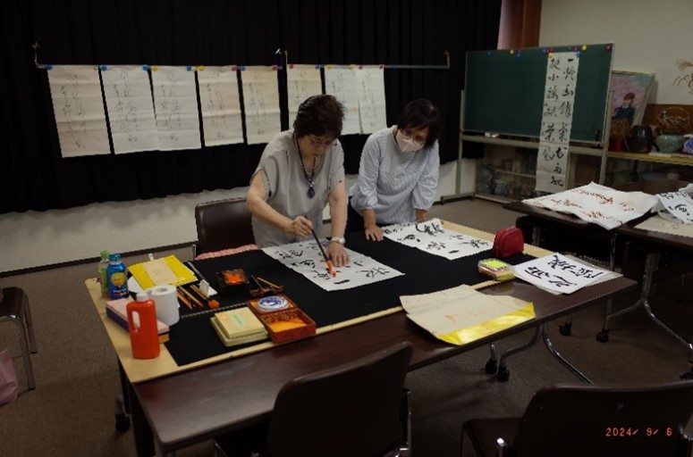 和気あいあいと、楽しく創作活動を行っています。各自、自分のやりたい書に取り組んでいます。