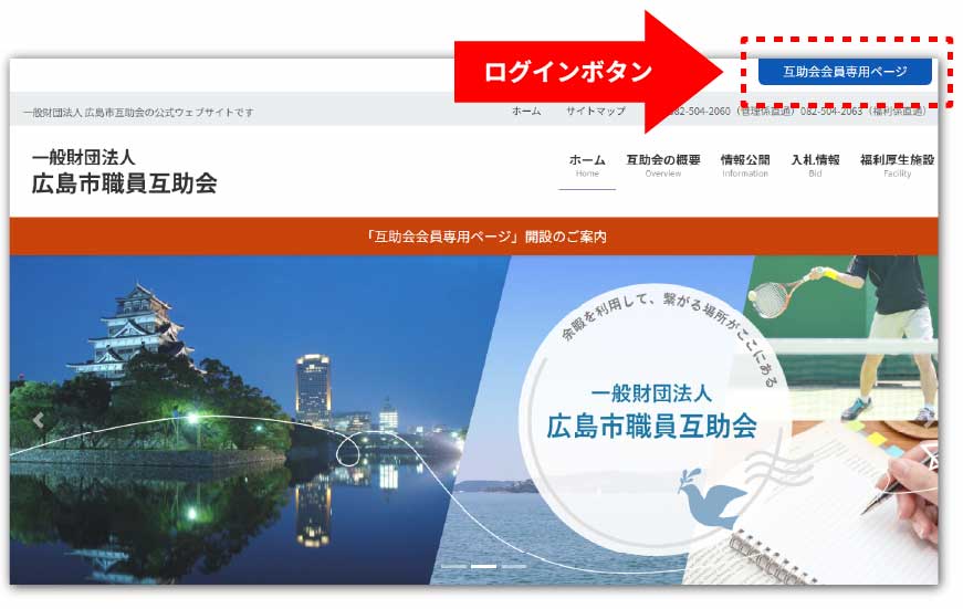 ページ上部の「互助会会員専用ページ」ボタンからログインページへ進み、